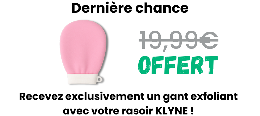 Essayer le rasoir 2-en-1 KLYNE® avec le gant exfoliant offert sans risque pendant 30 jours. Si vous n'êtes pas satisfait vous avez la possibilité de le demander un remboursement intégral.
