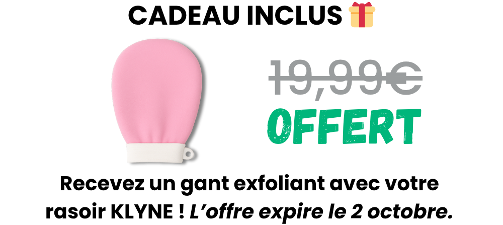 Essayer le rasoir 2-en-1 KLYNE® avec le gant exfoliant offert sans risque pendant 30 jours. Si vous n'êtes pas satisfait vous avez la possibilité de le demander un remboursement intégral.